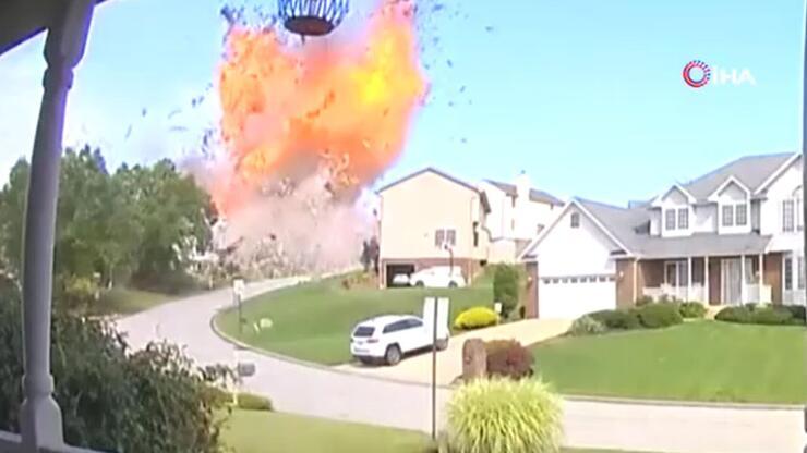 Evde meydana gelen patlama anı ise başka bir evin kapısında bulunan güvenlik kamerası tarafından anbean kayıt altına alındı.