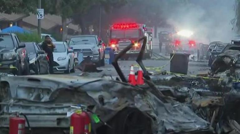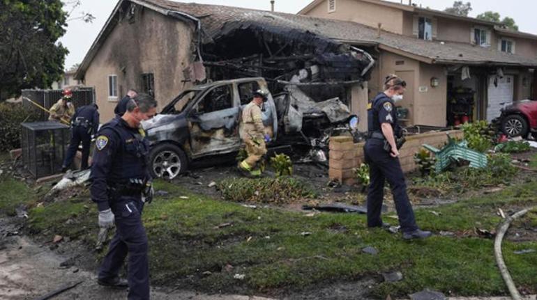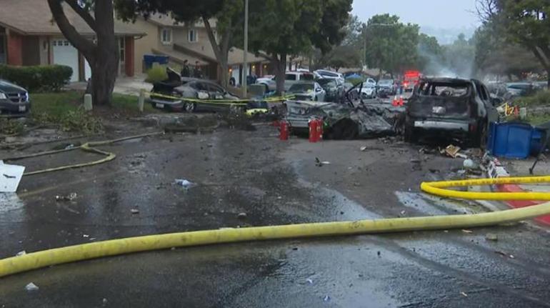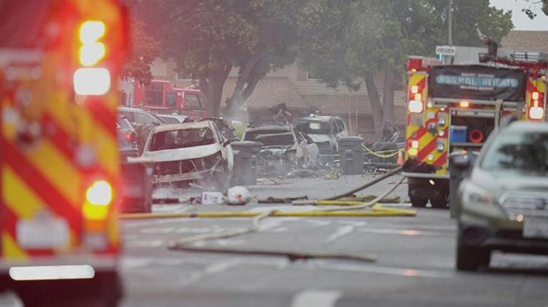 San Diego’da mahalleye uçak düştü! Evler ve araçlar alev alev