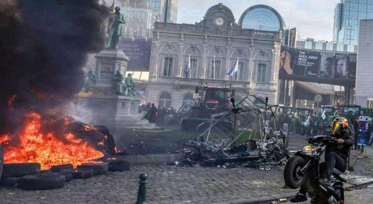 Bariyerlerin arkasında bulunan polislere aldırmadan traktörlerini sürmeye devam eden çiftçiler Avrupa Parlamentosu (AP) binası önünde de etrafı birbirine kattı. Çiftçiler AP önünde ateş yakarken, çevredeki parlamento binalarına taş, sis bombası ve havai fişek de attı. Lüksemburg Meydanı’ndaki polis barikatları da traktörlerle yıkıldı.
