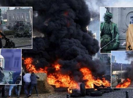 Bu sabah Brüksel’e ulaşan traktörler, AB Konseyi binasına giden yollar başta olmak üzere birçok ana yoldan AB binalarına doğru ilerledi. Polisin tüm müdahalelerine rağmen engellenemeyen traktörler, binaların çevresine ulaşmayı başardı.