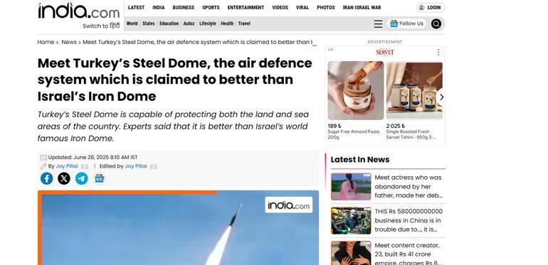 “Türkiye’nin Çelik Kubbesi, ülkenin kara ve deniz alanlarını koruyacak. Uzmanlara göre, İsrail’in Demir Kubbesi temel düzeyde bir güvenlik sağlarken, Çelik Kubbe çok katmanlı bir hava savunma sistemidir. Çelik Kubbe’nin sensörleri oldukça güçlü ve bu da sistemi daha isabetli hale getiriyor.”